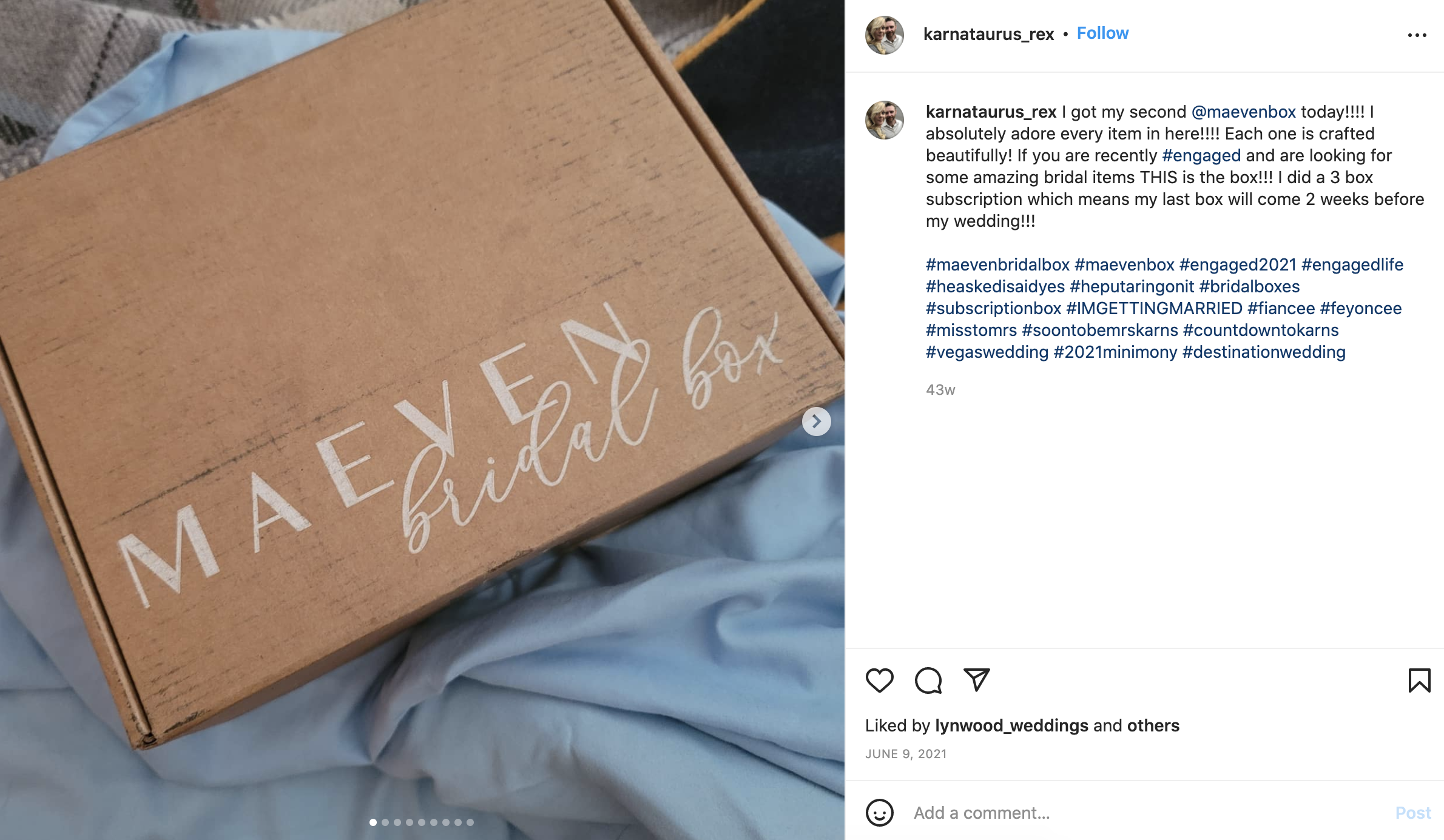 Maeven Brand is a subscription service box for couples beginning to plan their wedding. Beyond being useful for engaged couples, this subscription is a quick, easy, and affordable way for event planners and wedding professionals to stay on top of the biggest trends each season.