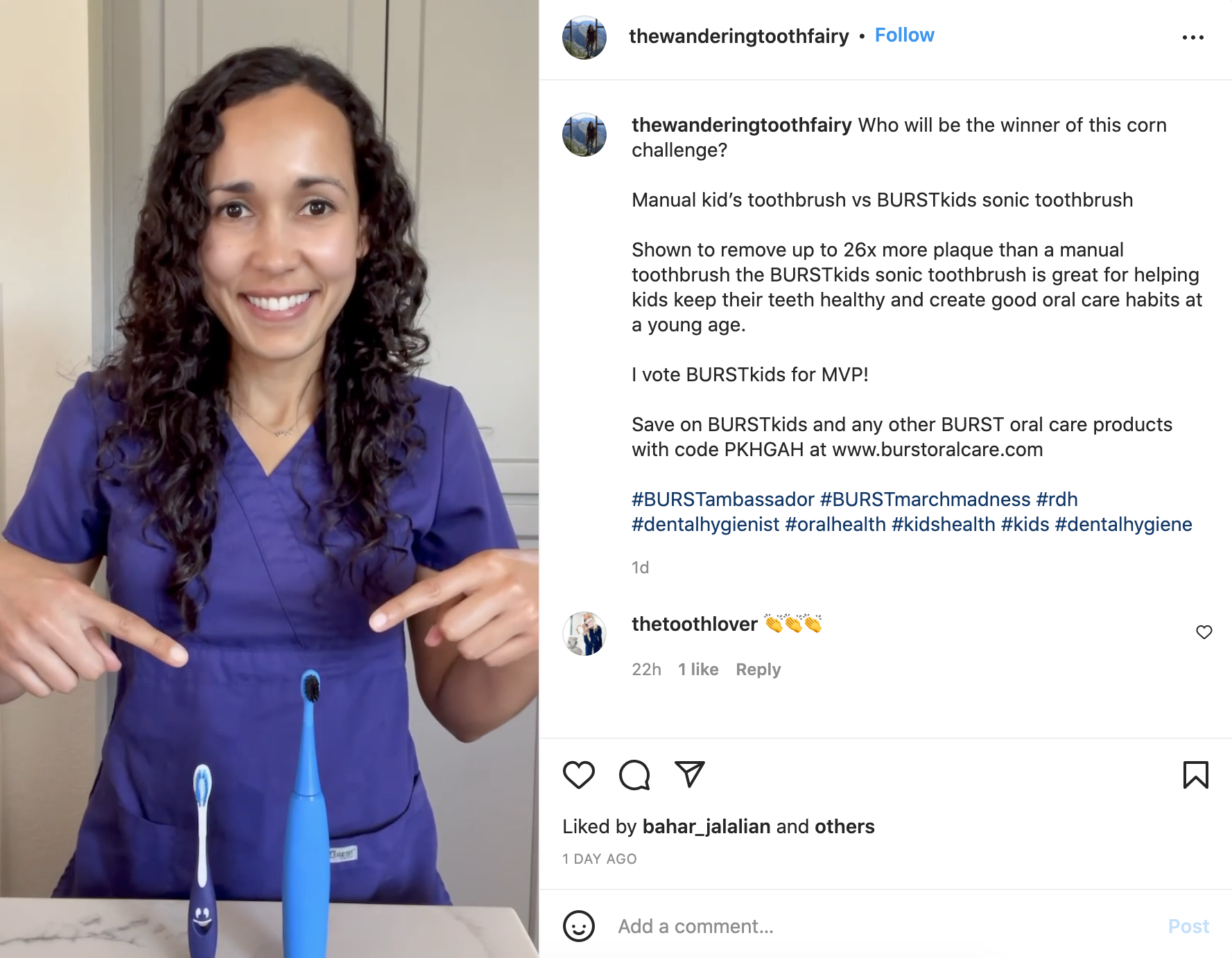 BURST takes a different approach with its brand ambassador programs than any other company on our list. It chooses to work with dental professionals instead of social media influencers or content creators.