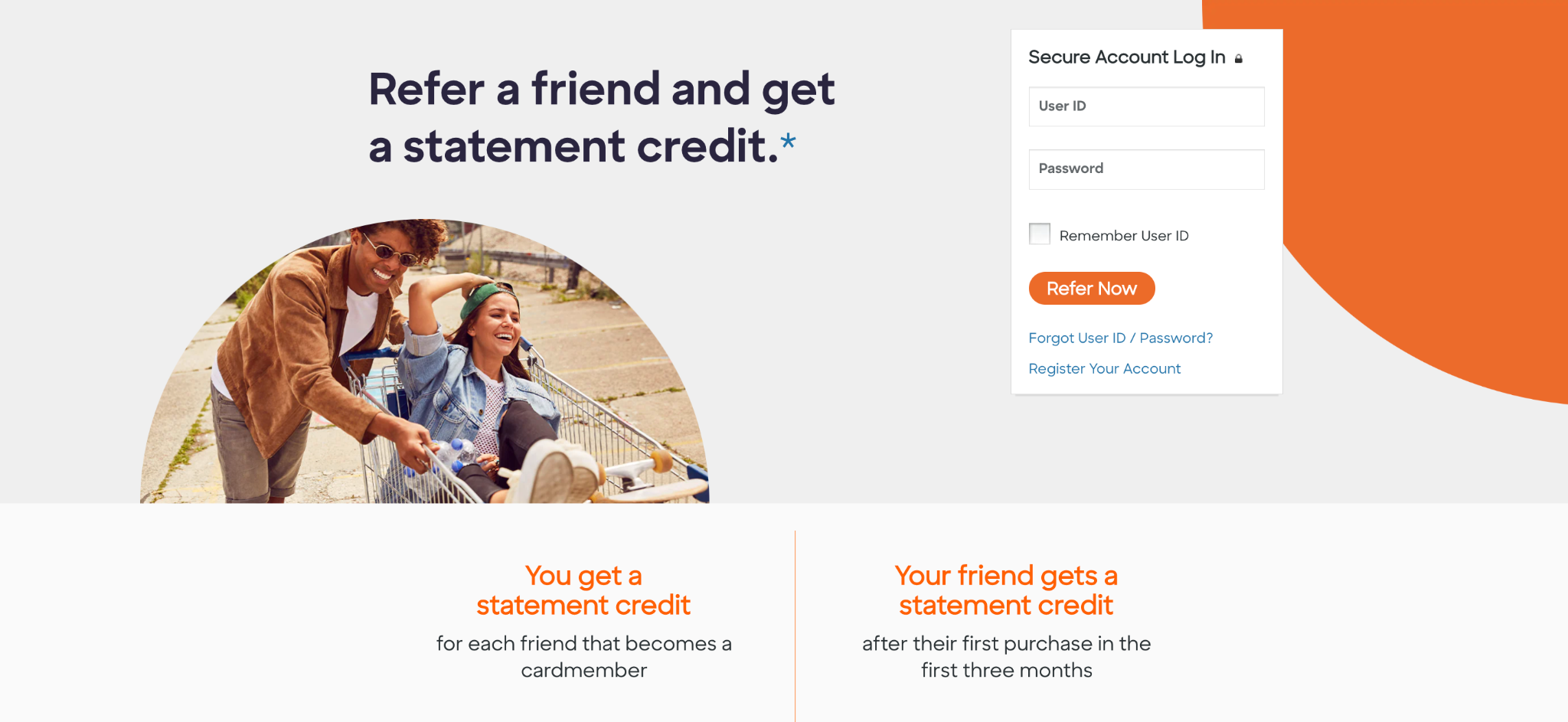 Both parties earn a $50 to $100 statement credit for each new account opened. For existing customers, the credit applies during the next billing cycle. For new customers, the credit applies after three months.