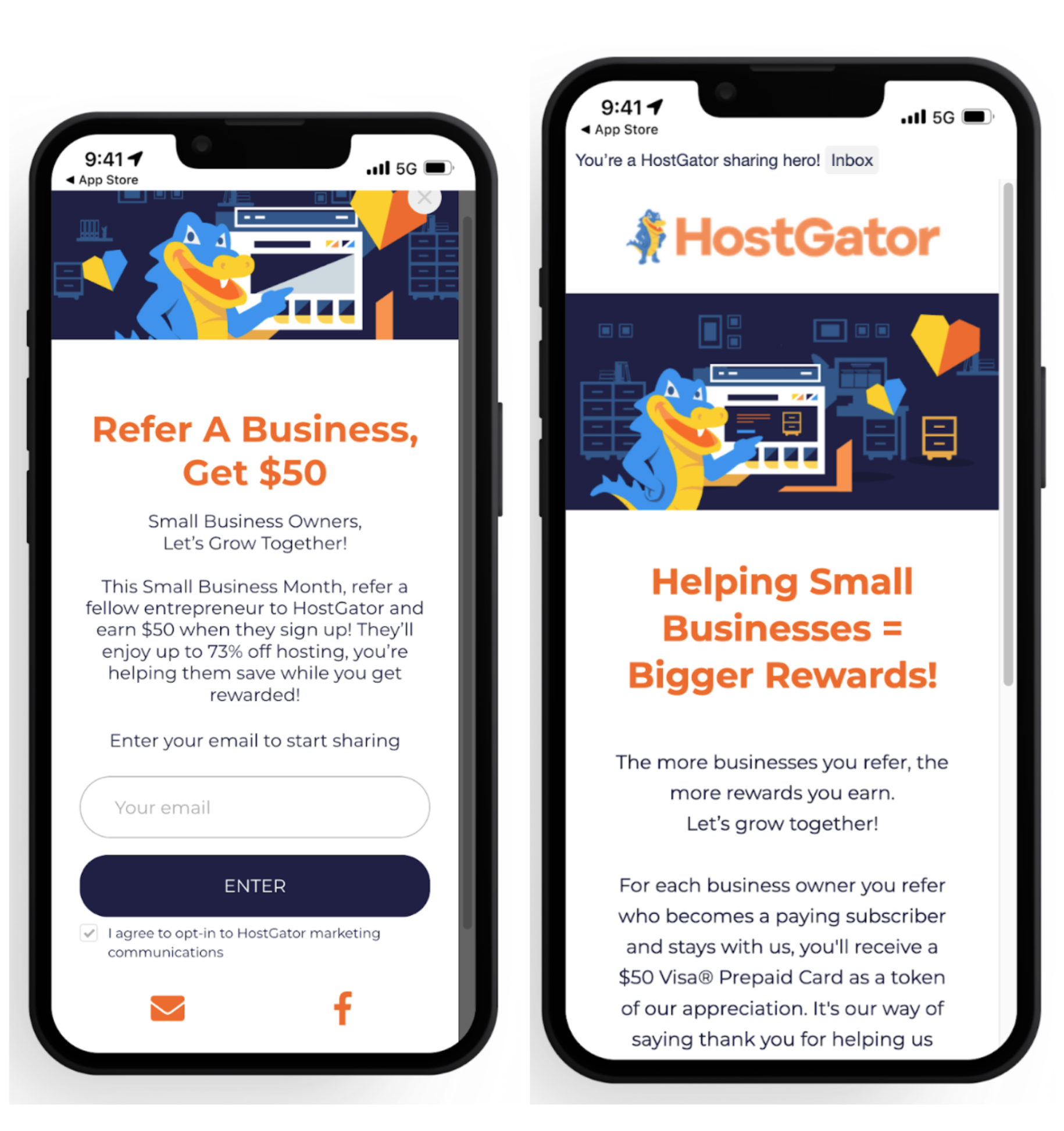 Web hosting platform HostGator leaned into a holiday that’s relevant to its customers, Small Business Month, with an enticing gift card reward burst.