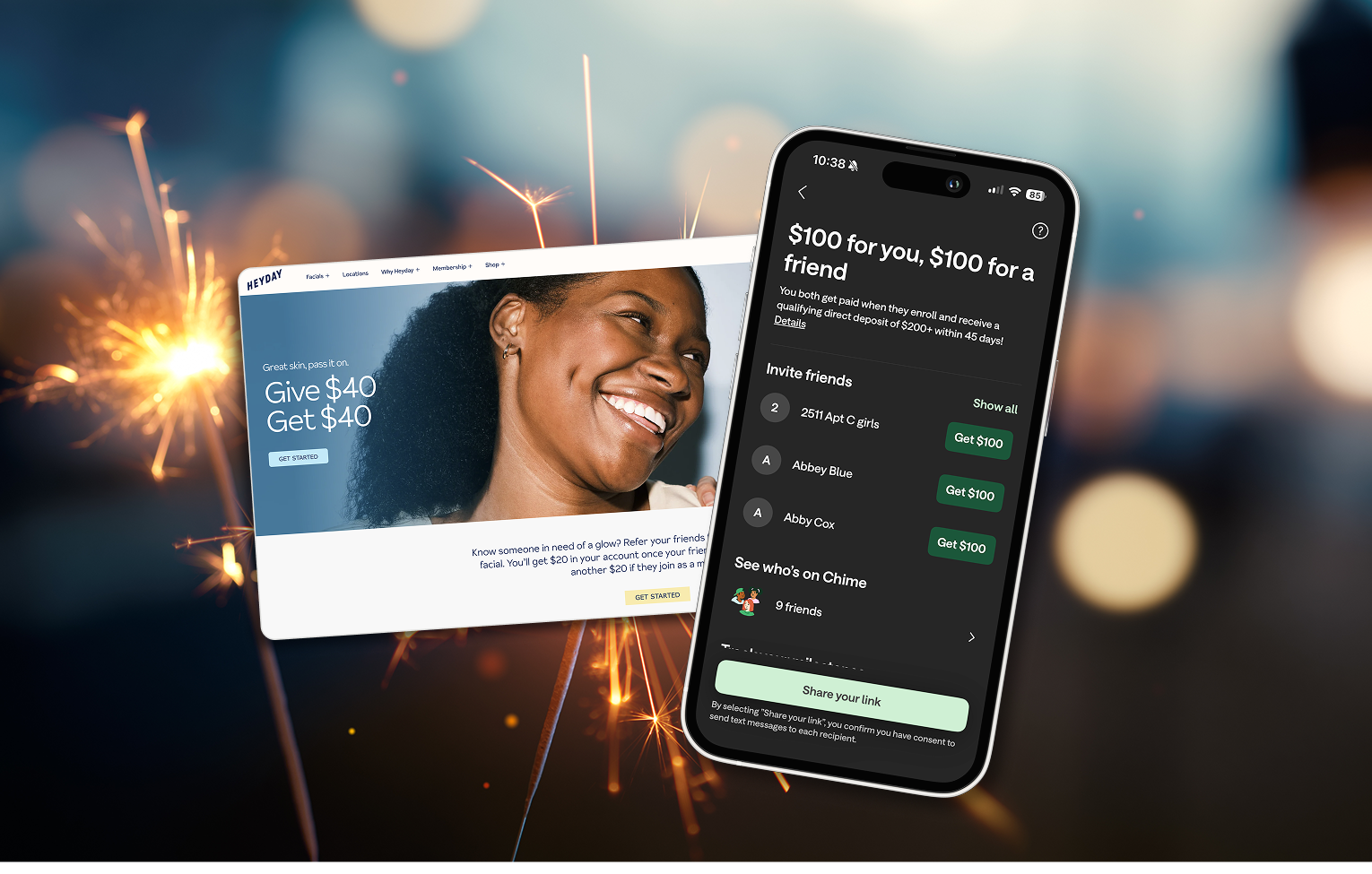Greenlight has made a splash as a debit card and money management tool for kids and families. The fintech innovator’s referral program branding leans into its younger demographic with playful imagery and a gamified rewards system that gives users a chance to win a major prize by referring their friends. Limited-time offers like this one keep Greenlight’s referral program fresh so its young customers stay excited to open the app and see what’s new.
