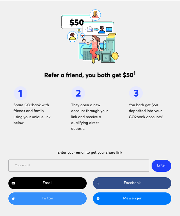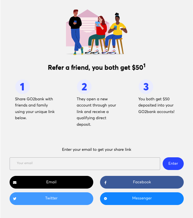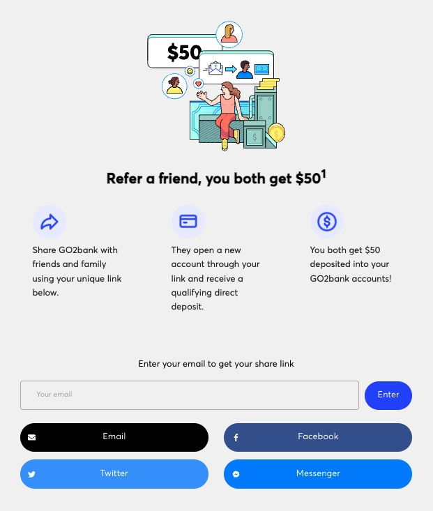 For any growing fintech company, referrals constitute a key stream of new revenue. GO2bank had a solid user base of current customers and wanted to help these customers refer their friends in the most effective way possible. The challenge? In order to maximize the number of new customers acquired thanks to the recommendations of existing customers, they need to make sure that they were not standing in the way of maximum sharing and that the top of the funnel of referrals was as wide as possible.